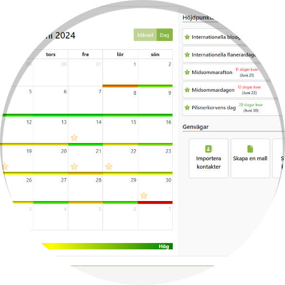 Through the power of machine learning, we analyze the data and show in the campaign calendar when the click rate is expected to be the highest. An intuitive color scale, from green to red, gives you a clear picture of the most optimal times for your campaigns.